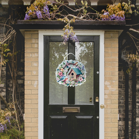 Bird House Wreath Cut-Out Door Hanger